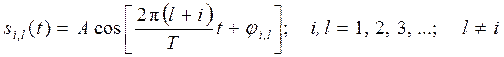 сигналы s 1(t) и s 2(t) ортогональны на интервале Т в усиленном смысле. Любые два гармонических сигнала s i , l являются ортогональными в усиленном смысле на интервале Т, если