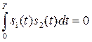 Сигналы s 1(t) и s 2(t) ортогональны на интервале Т, если их скалярное произведение