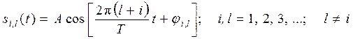 сигналы s 1(t) и s 2(t) ортогональны на интервале Т в усиленном смысле. Любые два гармонических сигнала s i , l являются ортогональными в усиленном смысле на интервале Т, если