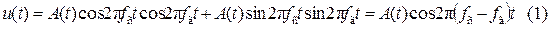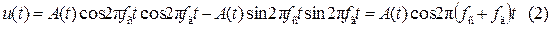 Преобразователь частоты выполнен по двухканальной параметрической схеме. Каналы содержат перемножители сигналов, на входы которых поступают колебания гетеродина cos2п f г t и АМ сигналы