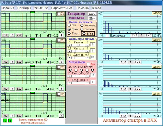 При изменении отдельных параметров периодически повторяющихся импульсов сохраняется форма огибающей их амплитудного спектра. Изменяются только параметры спектра: