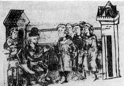 Князь принимающий дань. Миниатюра из Радзивиловской летописи. XV в.