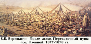 В трёх штурмах Плевны погибло 33 тыс. чел. Русское командование было деморализовано. Кампанию 1877 г. стали считать проигранной. Александр II решил отступить. Но вмешался министр иностранных дел Д.А. Милютин. На военном совете 1 сентября 1877 г. он убедил императора продолжить кампанию, но резко изменить тактику: от штурма крепости перейти к её осаде.