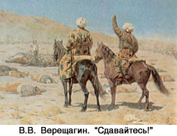Борьба с Бухарским эмиратом. В 1867 г. войска под командованием К.П. Кауфмана повели борьбу против бухарского эмира. Подстрекаемый к борьбе Великобританией, он объявил русским "газават". В 1868 г. русские войска взяли Самарканд, затем Бухару. Бухарский эмир запросил мира.