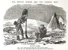 «Британские войска и Крымская война. Терпеливые герои». Карикатура из лондонского журнала «Панч» (1856 г.) Один оборванный английский солдат другому: