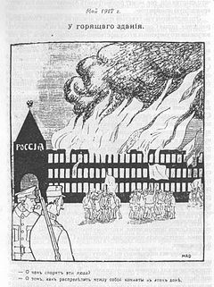 Либералы из партии конституционных демократов, преобладавшие в первых двух составах кабинета министров, как и меньшевики и эсеры, составлявшие большинство в третьем составе, целиком принадлежали к городской культурной элите, к тем кругам интеллигенции, которые соединяли в себе наивную и слепую веру в «народ» и страх перед окружавшей их «тёмной массой». В большинстве своём они полагали (по крайней мере, в первые месяцы революции), что необходимо дать полную волю демократическому потоку, освобождённому сначала кризисом, а затем – падением старого режима[2].