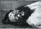 Труп Распутина Г. Е., убитого в ночь на 17 декабря 1916 года князем Юсуповым Ф. Ф., крайне правым монархическим думским депутатом Пуришкевичем В. М. и великим князем Дмитрием Павловичем.