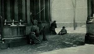 | Беляев лишь теперь, благодаря военным бунтам, понявший, что происходит нечто серьёзное, поехал в градоначальство, где был как бы штаб Хабалова. Там царили сутолока и растерянность. Командир всех запасных батальонов полковник Павленков объявился больным. Его должен был заменить Московского полка полковник Михайличенко. Беляев впервые увидел воочию, что нет начальника, который бы фактически командовал войсками. Только теперь военный министр увидел то, что уехавший в отпуск генерал Чебыкин не был заменен соответствующим старшим начальником! |