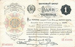 Взамен обесценившихся и фактически уже отвергнутых оборотом совзнаков в 1922 г. был начат выпуск новой денежной единицы — червонцев, имевших золотое содержание и курс в золоте (1 червонец = 10 дореволюционным золотым рублям = 7.74 г чистого золота). В 1924 г. быстро вытеснявшиеся червонцами совзнаки вообще прекратили печатать и изъяли из обращения; в том же году был сбалансирован бюджет и запрещено использование денежной эмиссии для покрытия расходов государства; были выпущены новые казначейские билеты — рубли (10 рублей = 1 червонцу). На валютном рынке как внутри страны, так и за рубежом червонцы свободно обменивались на золото и основные иностранные валюты по довоенному курсу царского рубля (1 американский доллар = 1.94 рубля).