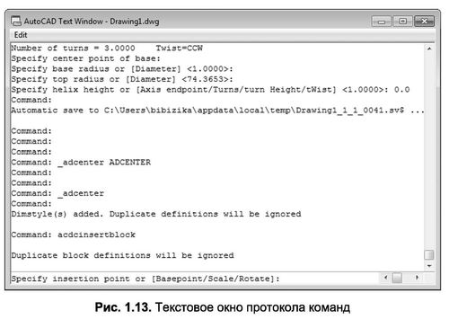 Записи командной строки автоматически сохраняются в протоколе работы с программой; их можно просмотреть из специального текстового окна (рис. 1.13), которое вызывается клавишей F2.