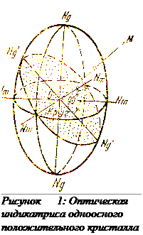 Индикатриса – воображаемая поверхность, состоящая из таких точек, что радиус-вектор, проведённый к ним из геометрического центра фигуры, направлен по направлению колебаний света и численно равен показателю преломления для соответствующих лучей.