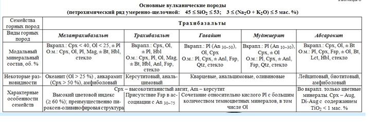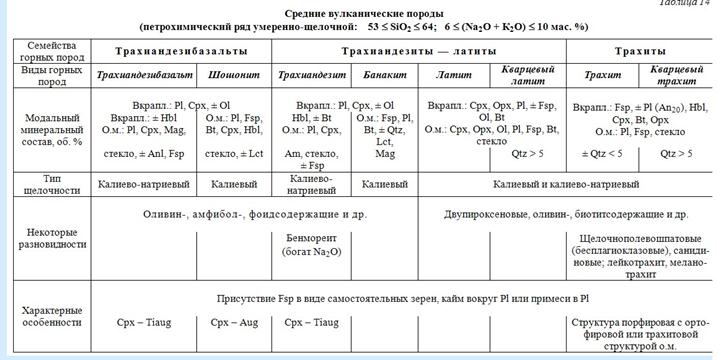 Основные и средние вулканические породы умеренно-щелочного ряда