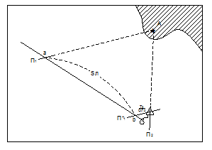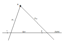 первого пеленга должно находиться на линии П1, в момент взятия второго пеленга на линии П2. Следовательно, расстояние, пройденное судном между моментами взятия пеленгов, Sл, должно вместиться между линиями пеленгов П1 и П2.