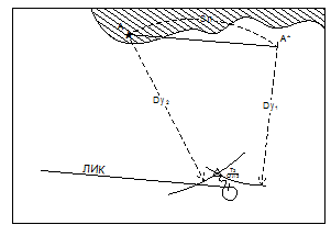 полученная точка является смещённым местом ориентира А* из которой как из центра построить изолинию расстояния Dу1. В точке пересечения изолиний получим счислимо-обсервованное место;
