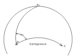 Ортодромия – изолиния пеленга с ориентира на судно – линия, пересекающая меридиан ориентира под постоянным углом По.