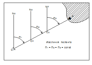 Изолиния пеленга – прямая, проходящая через точку, обозначающую ориентир.