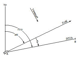 Направление движения судна с учётом течения определяется не углом ИК, а путевым углом на течении (ПУβ):