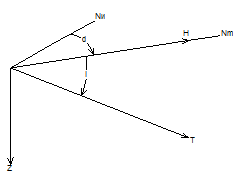 Горизонтальная магнитная сила Н направлена по магнитному меридиану Nm, который не совпадает с истинным меридианом Nи.