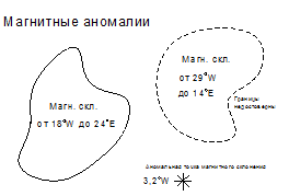 Магнитные аномалии. (см. рис.) В некоторых районах магнитное склонение значительно отли-чается от его значения в окружающих точках.