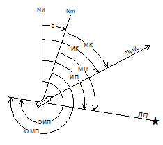 Магнитный пеленг МП – угол между N полови-ной магнитного меридиана и линией пеленга ЛП.