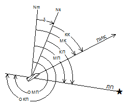 Компасный курс КК – угол между N половиной компасного меридиана и линией курса ЛИК.