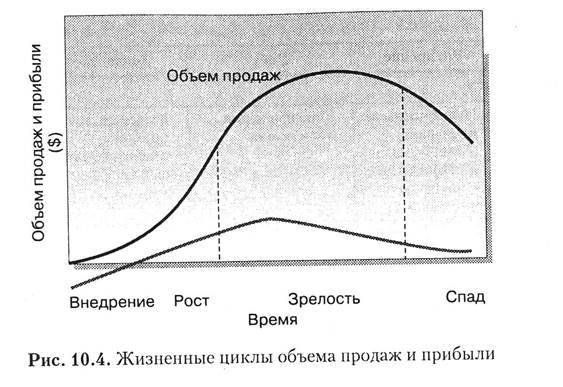 1 - Внедрение: период медленного увеличения объема продаж, когда товар впервые поступает на рынок и только «завоевывает» покупателей. В связи с большими затратами на данном этапе товар не приносит прибыли.