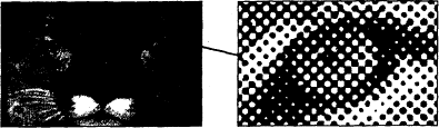 Если рассмотреть с помощью увеличительного стекла черно-белое графическое изображение, напечатанное в газете или книге, то можно увидеть, что оно состоит из мельчайших точек, образующих характерный узор, называемый растром (рис. 1.3).