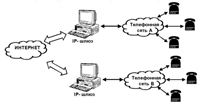 Технология IP-телефонии объединяет сети с коммутацией каналов (передающие голосовую информацию) и сети с коммутацией пакетов (передающие данные) в единую коммуникационную сеть. Бесперебойное распознавание голоса и его передача из одной сети в другую решаются с помощью различных шлюзов. Как показано на Рис.1, шлюз представляет собой устройство, в которое с одной стороны включаются телефонные линии, а с другой стороны — IP-сеть.
