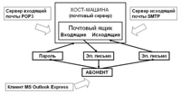 Cервер и клиент электронной почты работают по разным протоколам. Сервер программа POP3 (Post Office Protocol — протокол почтового отделения) кроме всего прочего выполняет функцию защиты информации. Во время сеанса связи она устанавливает личность пользователя, обеспечивает связь с его персональным ящиком. При работе клиент-программы никакого установления личности не требуется. Ее задача — передать на сервер исходящие письма и принять поступившие. Здесь используется более простой протокол SMTP (Simple Mail Transfer Protocol — простейший протокол передачи почты).