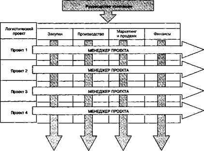 Для обеспечения интеграции логистического процесса на типичную вертикальную линейно-функциональную структуру управления компанией накладывается проектно-целевая горизонтальная структура, которая образует своеобразную матрицу.