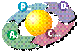 PDCA (англ. «P lan- D o- C heck- A ct» - планирование-действие-проверка-корректировка) циклически повторяющийся процесс принятия решения, используемый в управлении качеством. Также известен как Deming Cycle, Shewhart cycle, Deming Wheel или Plan-Do-Study-Act. Также известен как принцип Деминга-Шухарта, но Деминг предпочитал PDSA (Plan-Do-Study-Act) у Шухарта (Plan-Do-Сheck-Act)