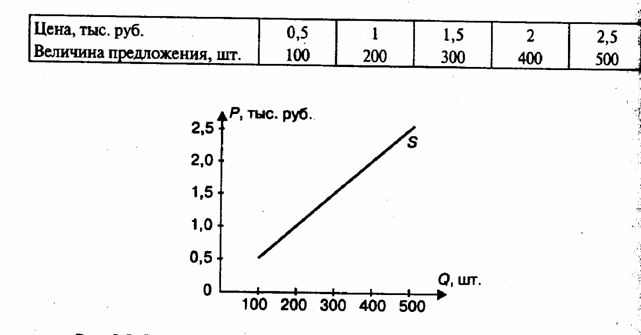 Как видно из приведенного графика, если цена костюма повысится с 1 тыс. до 2 тыс. руб., то количество предлагаемых костюмов увеличится с 200 до 400 шт. ежедневно. И наоборот.