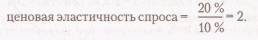 В этом примере эластичность спроса по цене, равная 2, означает, что изменение объема спроса в два раза больше, чем изменение цены.