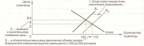 Анализ рынка сельскохозяйственных продуктов позволяет объяснить кажущуюся парадоксом социальную политику: сельскохозяйственные программы, ориентированные на помощь фермерам, стимулируют сокращение используемых в производстве земель. В чем дело? Цель таких программ заключается в уменьшении предложения сельскохозяйственных продуктов и, следовательно, увеличении цены на них. Так как спрос на продукты неэластичен, фермеры как группа, получают большую совокупную выручку, если они предлагают рынку меньше зерна. Самостоятельно ни один фермер не согласится уничтожить зерно, так как каждый принимает рыночную цену такой, какая она есть. Но если бы все фермеры сократили предложение продуктов, повысился бы уровень жизни каждого из них.