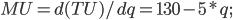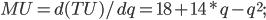 Найти: Объем потребления q, при котором начинает действовать закон убывания предельной полезности, т.е. MU начинает уменьшаться.