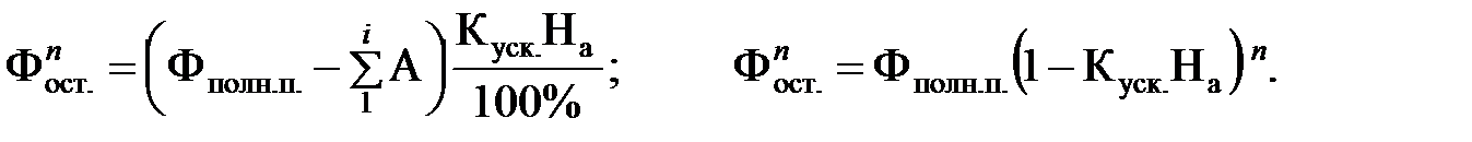 Остаточная стоимость ОПФ по истечении n лет службы: