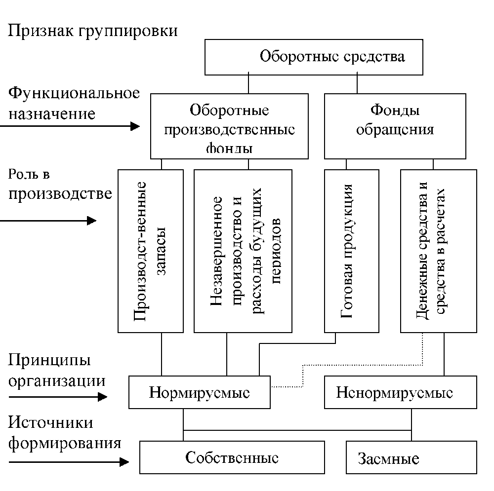 | Функциональная роль в деятельности предприятия | ® | Оборотные производственные фонды Фонды обращения |