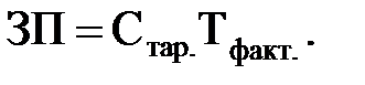 При простой повременной системе и 100-процентном выполнении задания зарплата ЗП определяется умножением тарифной ставки Стар. согласно присвоенному разряду (или окладу) на фактически отработанное время Тфакт.: