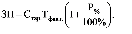 При повременно-премиальной оплате работник получает премию за достижение определенных количественных и качественных показателей. Зарплату с учётом премии Р% в процентах от месячной оплаты труда определяют по формуле