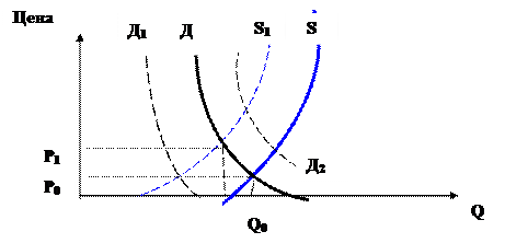 Рис. 4.3.1. Равновесие спроса и предложения на рынке при ЧС