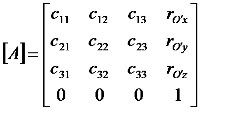 , согласно методике однородных преобразований, характеризуется матрицей преобразования однородных координат