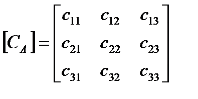 : каждый столбец этой матрицы дает значения направляющих косинусов, характеризующих ориентацию соответствующей оси связанной системы относительно осей базовой системы; подматрица - вектор