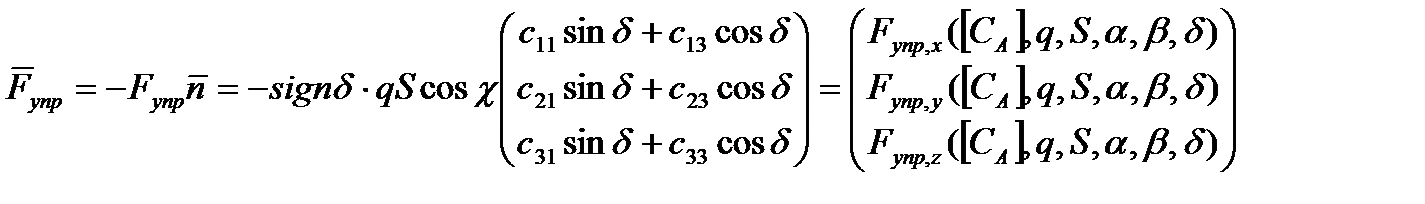 Используя матричный метод однородных преобразований [3] можно показать, что для компонент вектора аэродинамической силы