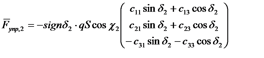 На основании предполагаемой симметрии ориентации второго стабилизатора относительно первого можно получить выражение для силы управления за счет второго стабилизатора в виде: