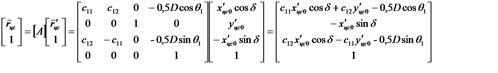 Тогда в системе координат, связанной с дирижаблем, компоненты радиус-вектора, описывающего положение центра масс руля при отклонении его на угол