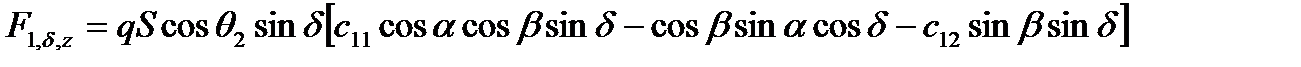 Компоненты вектора аэродинамической силы от действия левого руля управления в системе координат