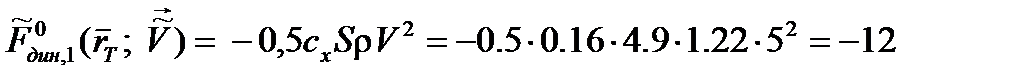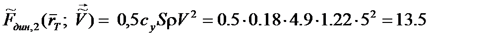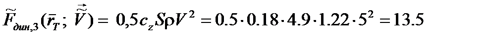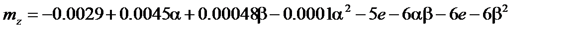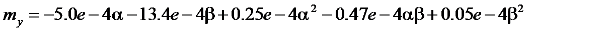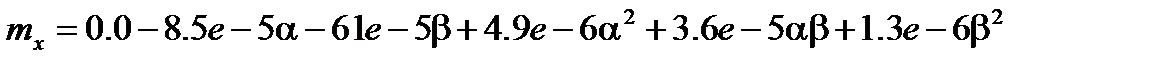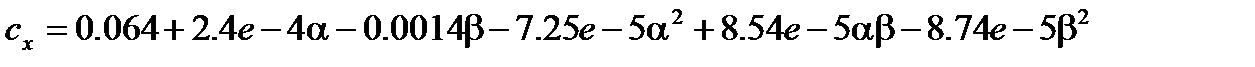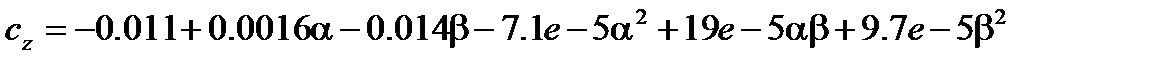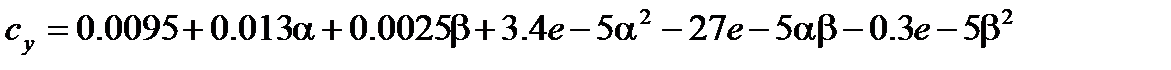 Теперь определим значения динамических сил в желаемом режиме движения дирижабля, которые, в отличие от случая, рассмотренного в предыдущем пункте, не равны нулю. Для этого в выражения (2.49) необходимо подставить значения номинальных параметров. При этом аэродинамические коэффициенты определяются из графиков, представленных на рис. 2.19 – 2.25, и построенных в зависимости от угла атаки и скольжения, которые для данного случая равны: