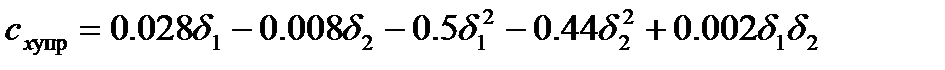 Далее, аналогично предыдущему случаю, вычисляем коэффициенты линейной модели для управляющих воздействий. используя выражения (2.014). Вычисления здесь не приводятся.