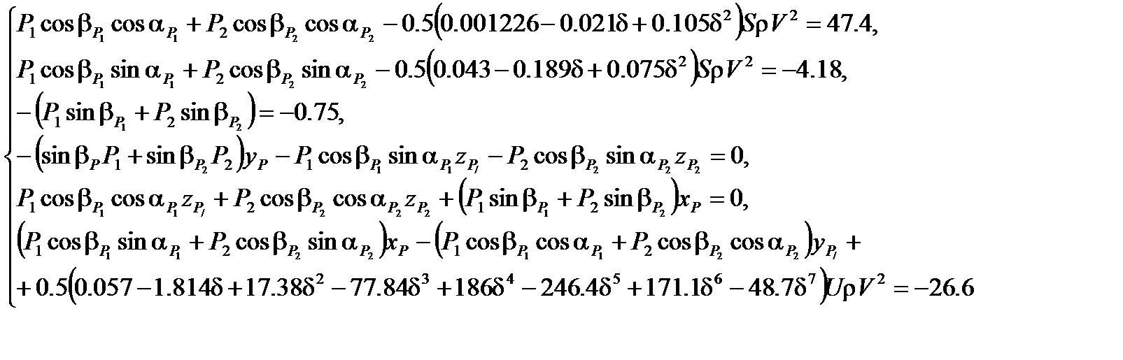 Решая систему (2.192), получаем значения управляющих сил и моментов в установившемся режиме: