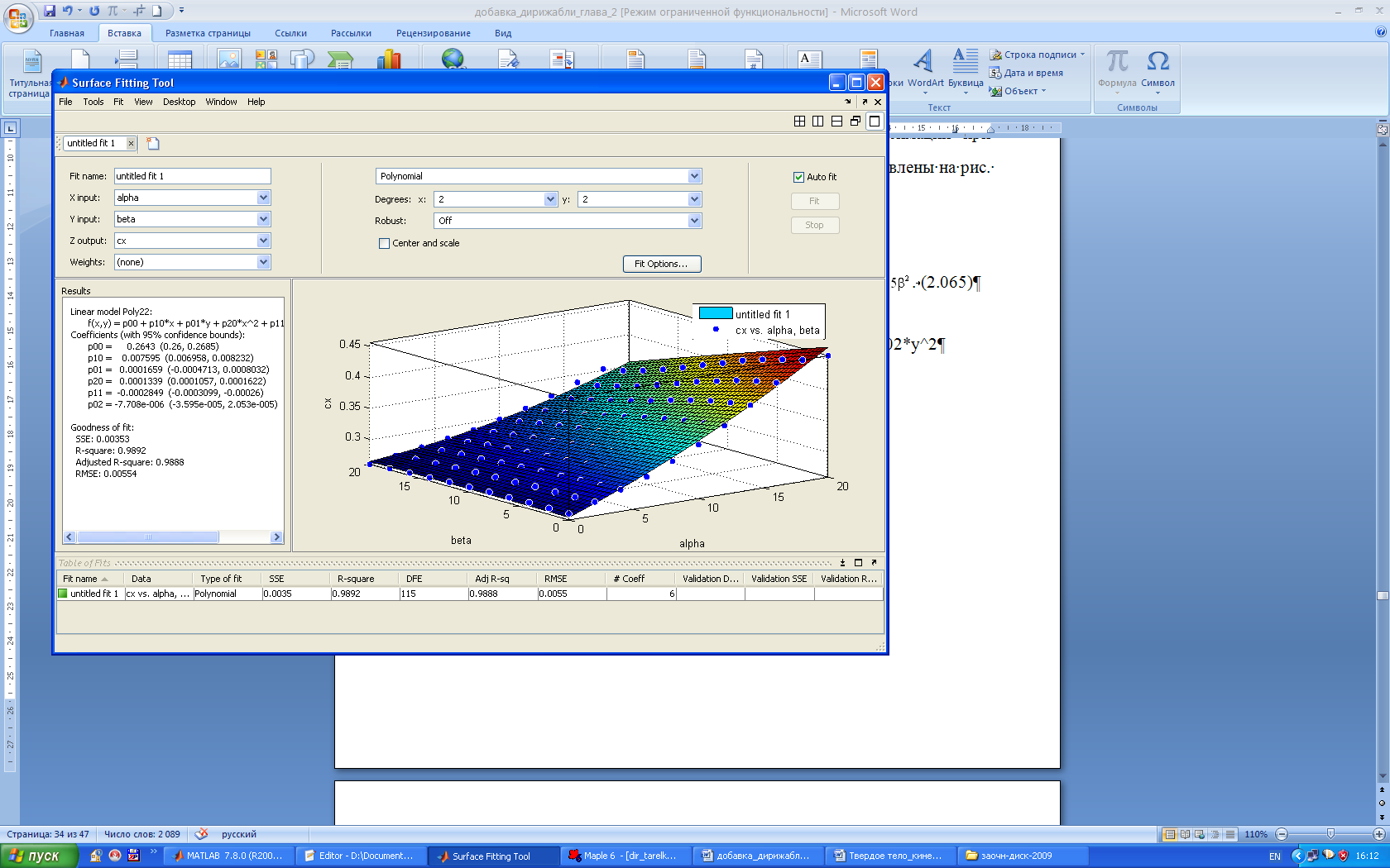 Рис. 2.43 – Аппроксимация коэффициента cx.